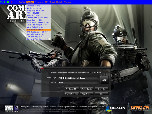 NX Chams Combat Arms (PC) Diferentemente dos últimos cheats, nesse você não precisará de nenhum Injector ou .DLL. Você apenas vai copiar os arquivos que estiverem contidos na pasta que você baixará no final do artigo para a pasta “Game“, localizada dentro da pasta “Combat Arms” (quase sempre está localizado no seguinte diretório: C:\Program Files\Level Up Games\Combat Arms\Game” [confirmar informação, não tenho certeza...